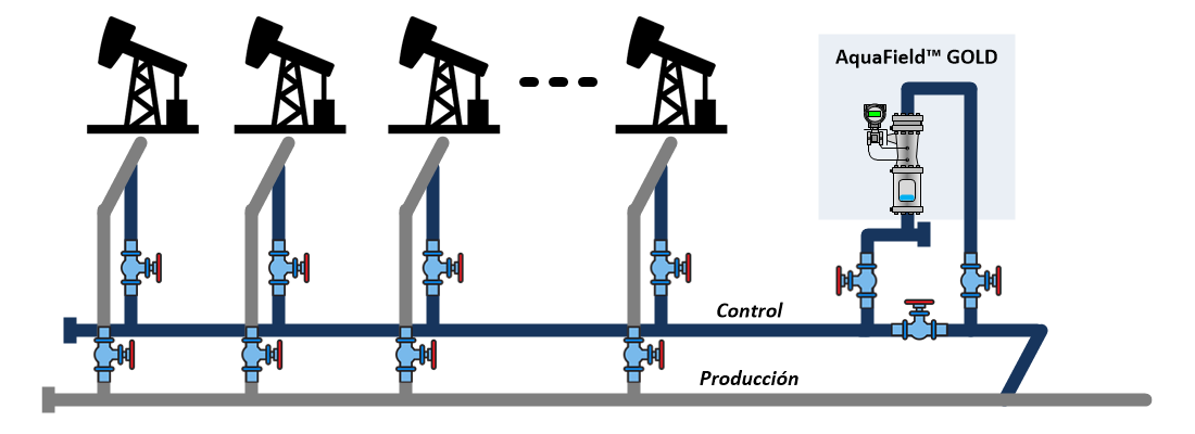 El AquaField™ puede utilizarse tanto para el monitoreo de pozos individuales, como en reemplazo de separadores de test, tanto en forma temporaria como permanente.