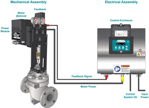 Parte de la solución es recurrir a un control de tipo electrohidráulico, dado que el aceite es incompresible. El actuador REXA Electraulic™ es un sistema electrohidráulico autocontenido, y proporciona además un control de movimiento de la válvula con un tiempo muerto de 50 - 70 ms, repetibilidad menor a 0,1% en la carrera completa, y también es capaz de cumplir con un tiempo de operación de 500 ms.